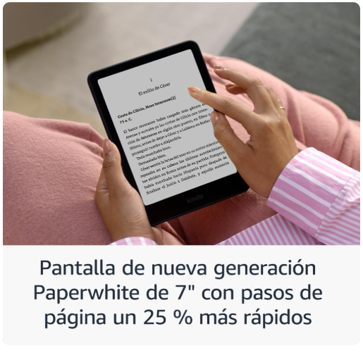 Si buscas el regalo que lo tiene todo sin irte al extremo premium, el Kindle Paperwhite es la elección ideal. Es el modelo más popular, diseñado para el lector habitual que lee durante horas en cualquier entorno.